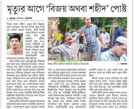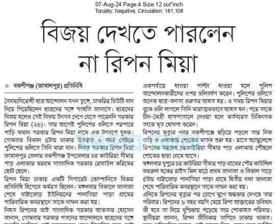 সময়ের আলো, ৭ আগস্ট ২০২৪, বিজয় দেখতে পারলেন না রিপন মিয়া