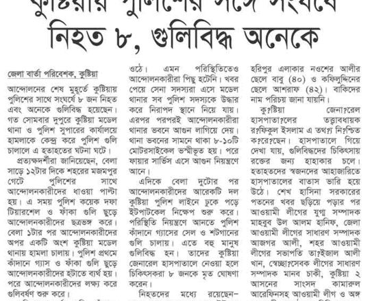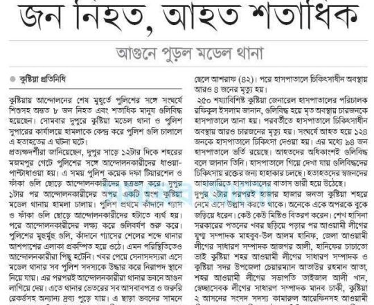 সময়ের আলো, ৭ আগস্ট ২০২৪, কুষ্টিয়ায় সংঘর্ষে শিশুসহ ৮ জন নিহত, আহত শতাধিক আগুনে পুড়ল মডেল থানা