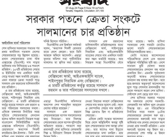 শেয়ার বিজ, ৭ আগস্ট ২০২৪, অন্তর্বর্তী সরকারের সময় জানা যাবে অর্থ পাচারে কারা জড়িত