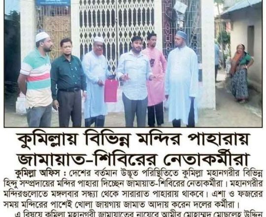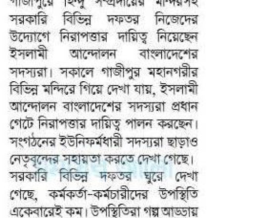 সময়ের আলো, ৭ আগস্ট ২০২৪, মন্দির পাহারায় ইসলামী আন্দোলনে কর্মীরা