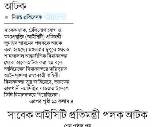 সময়ের আলো, ৭ আগস্ট ২০২৪, সাবেক আইসিটি প্রতিমন্ত্রী পলক আটক