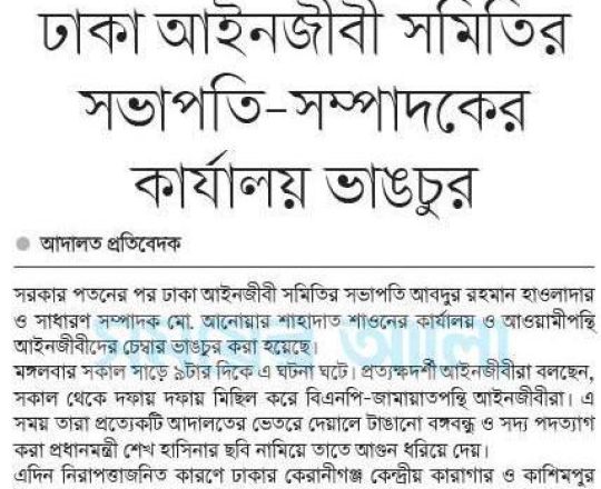 সময়ের আলো, ৭ আগস্ট ২০২৪, ঢাকা আইনজীবী সমিতির সভাপতি-সম্পাদকের কার্যালয় ভাঙচুর
