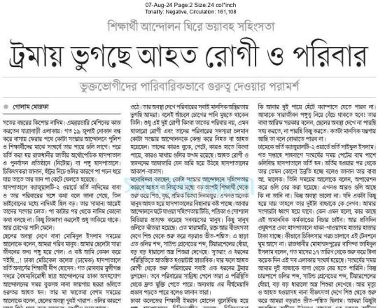 সময়ের আলো, ৭ আগস্ট ২০২৪, ট্রমায় ভুগছে আহত রোগী ও পরিবার