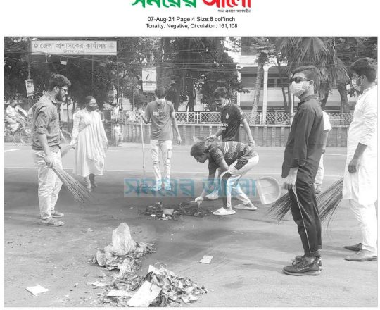 সময়ের আলো, ৭ আগস্ট ২০২৪, চাঁদপুরে সড়ক পরিচ্ছন্নতা অভিযানে নামেন শিক্ষার্থীরা