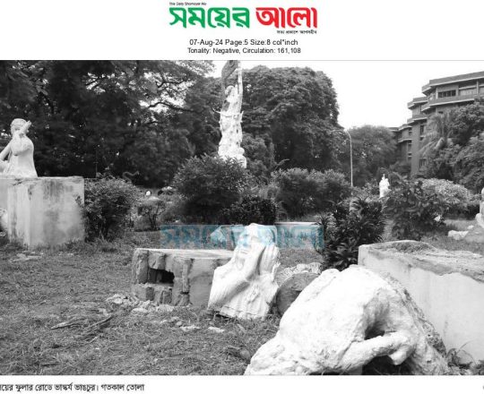 সময়ের আলো, ৭ আগস্ট ২০২৪, ঢাকা বিশ্ববিদ্যালয়ের ফলার রোডে ভাস্কর্য ভাঙচুর
