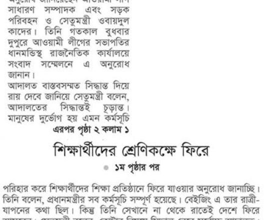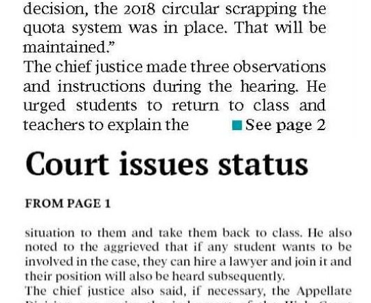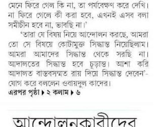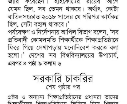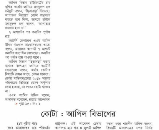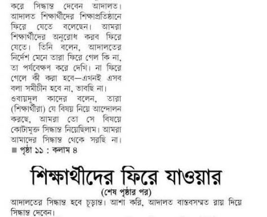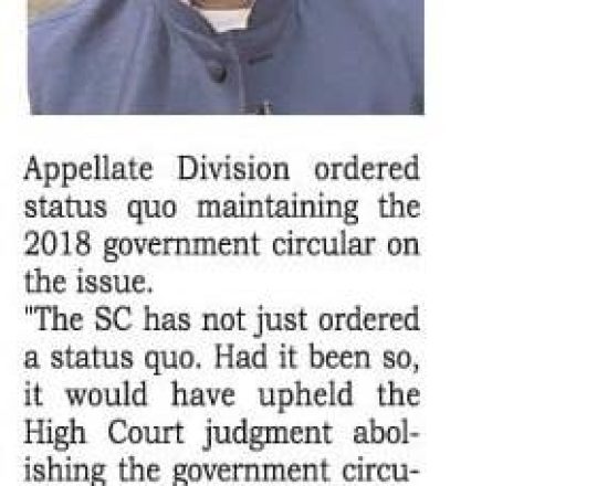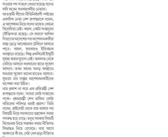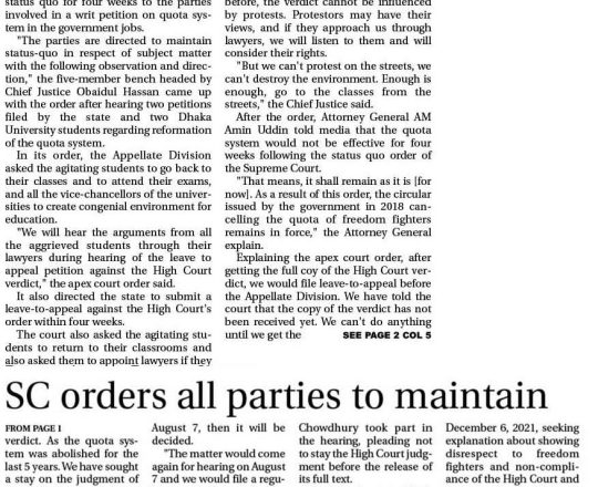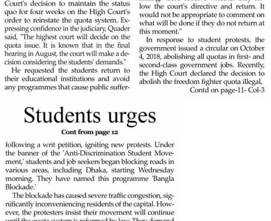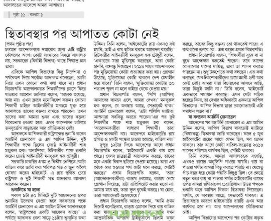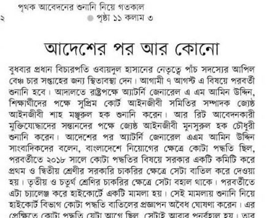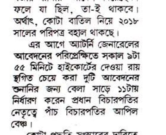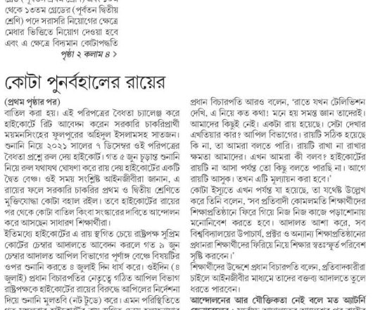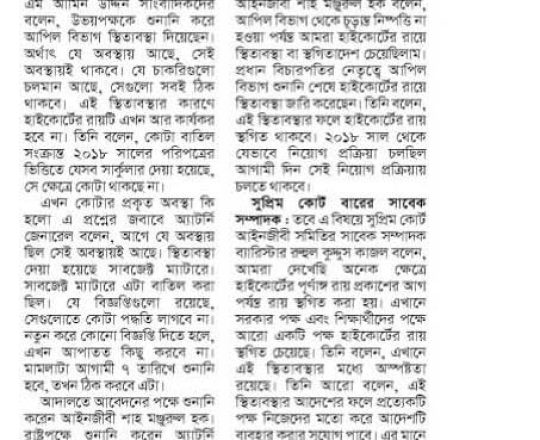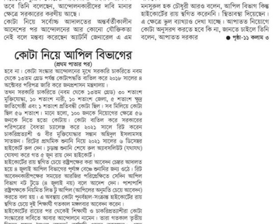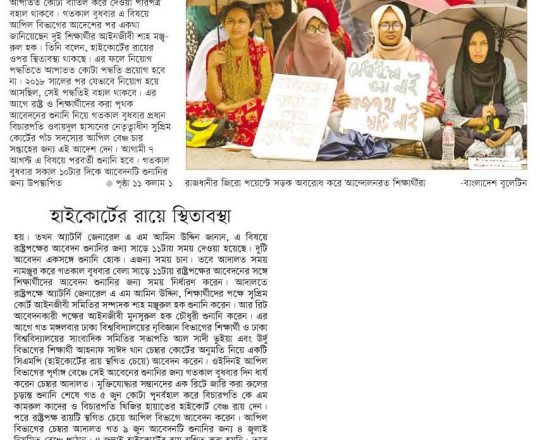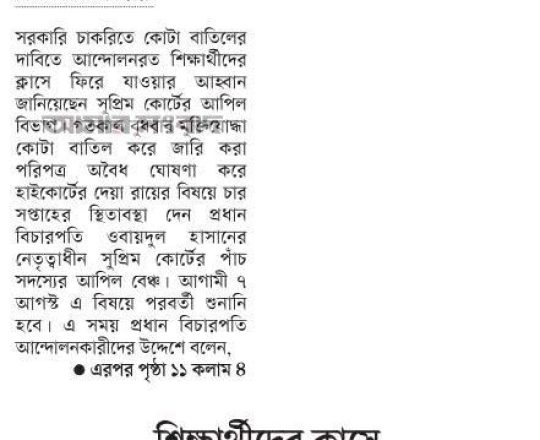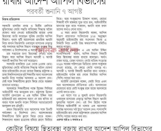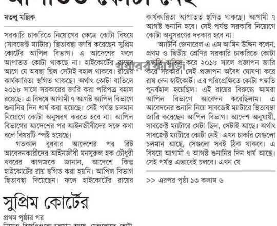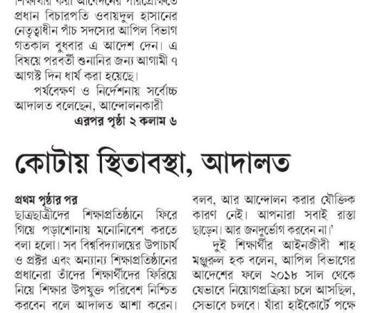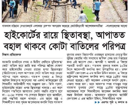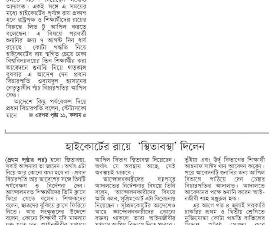 নয়া দিগন্ত, ১১ জুলাই ২০২৪, হাইকোর্টের রায়ে স্থিতাবস্থা
