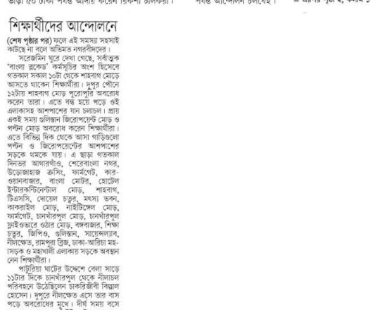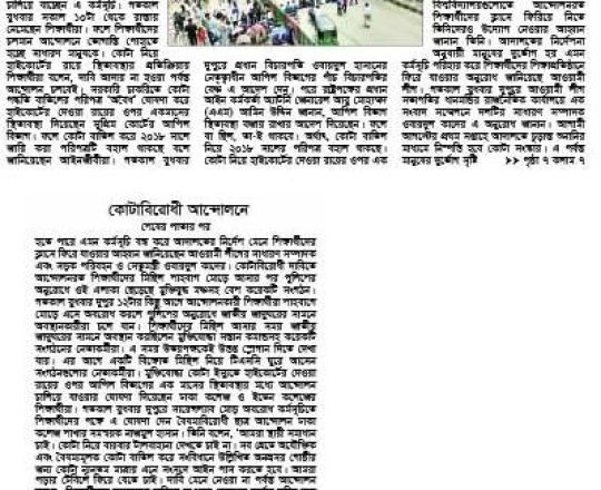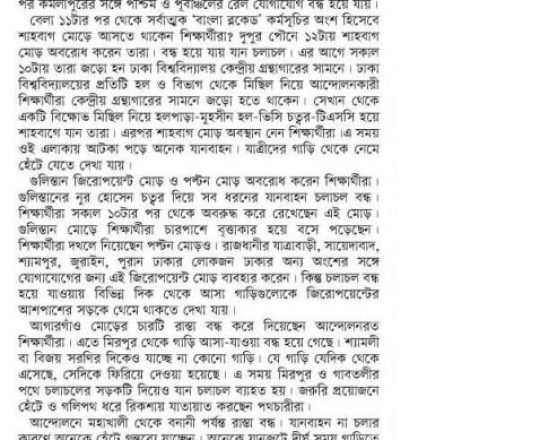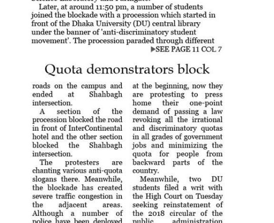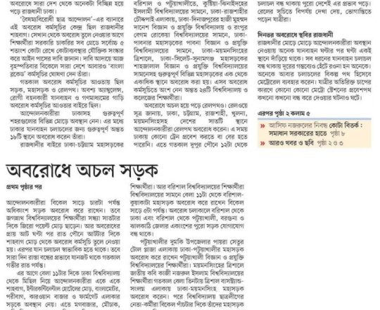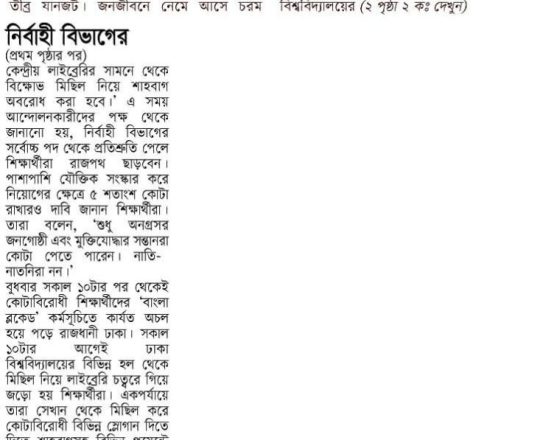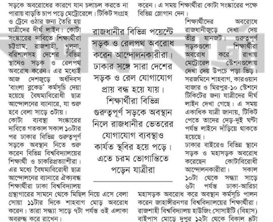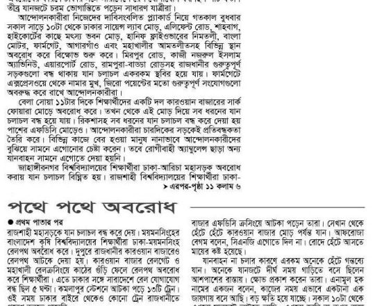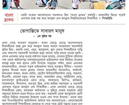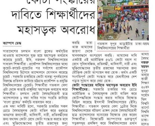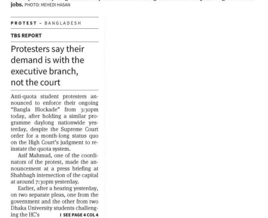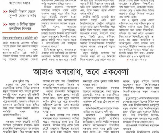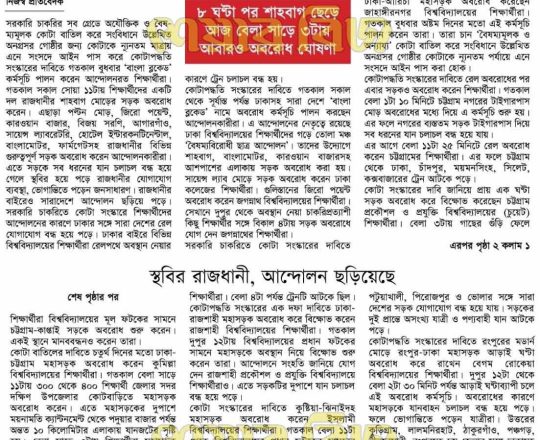 প্রথম আলো ১১ জুলাই সরকারি সব চাকরির কতা সংস্কারের নতুন দাবি, আজ আবারও বাংলা ব্লকেড