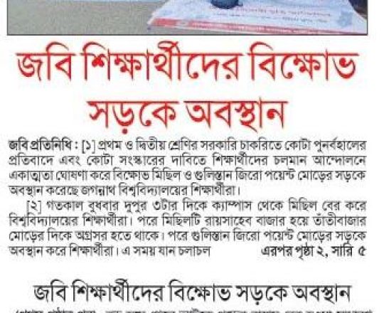 আমারদের অর্থনীতি, ১১ জুলাই ২০২৪, জবি শিক্ষার্থীদের বিক্ষোভসড়কে অবস্থান