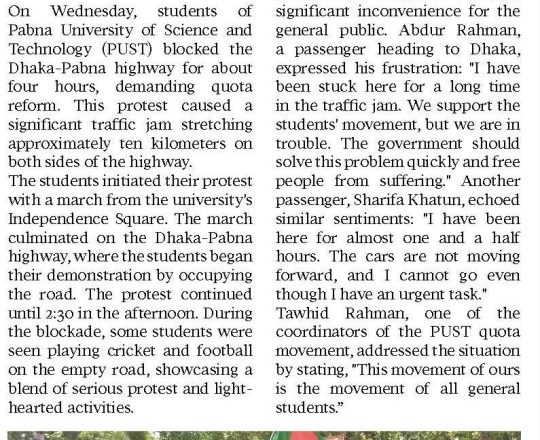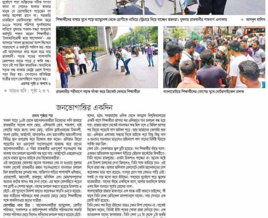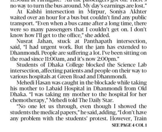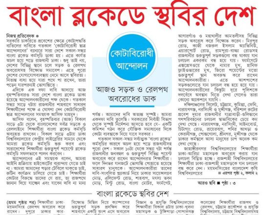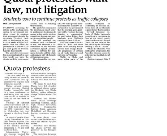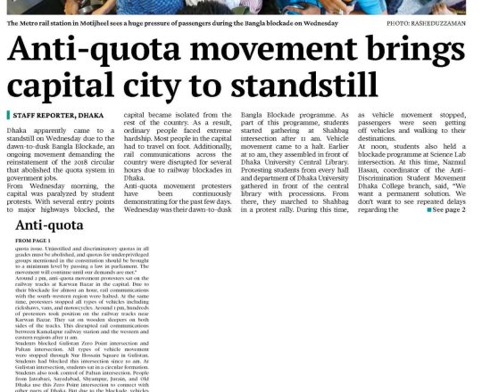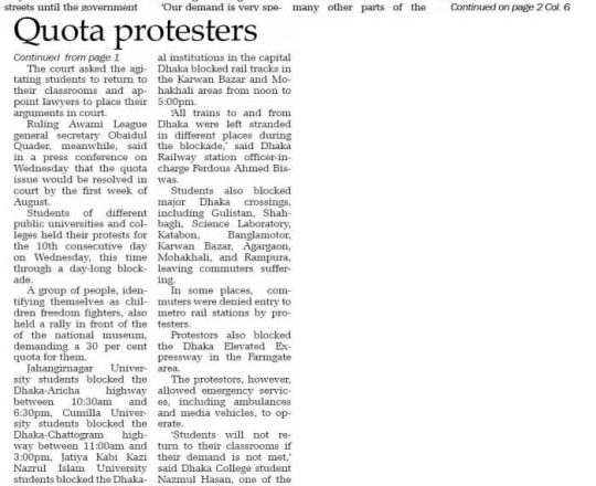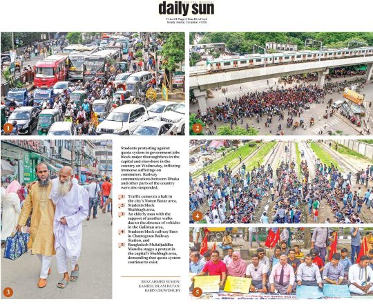 Asian Age, 11 july 2024, Quota demonstrators block major roads across Dhaka city
