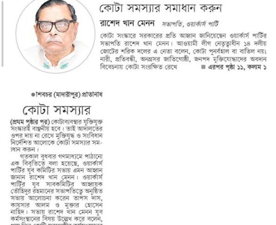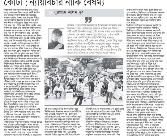 নবচেতনা, ১১ জুলাই ২০২৪, কোটা, নাকি কোটা না