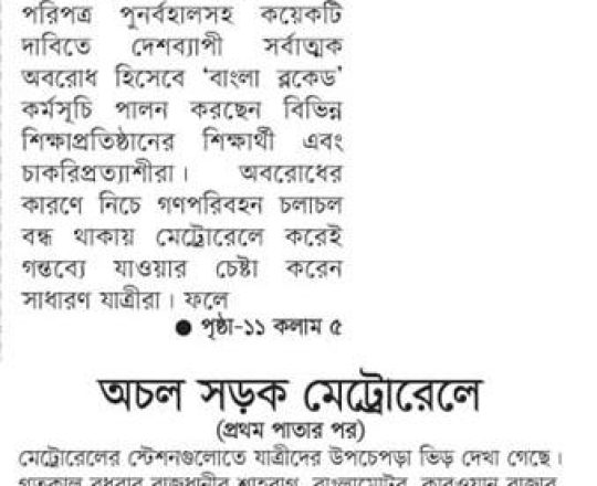 ভোরের ডাক, ১১ জুলাই ২০২৪, বাংলা ব্লকেডে অচল সড়ক, মেট্রোতে উপচেপড়া ভিড়