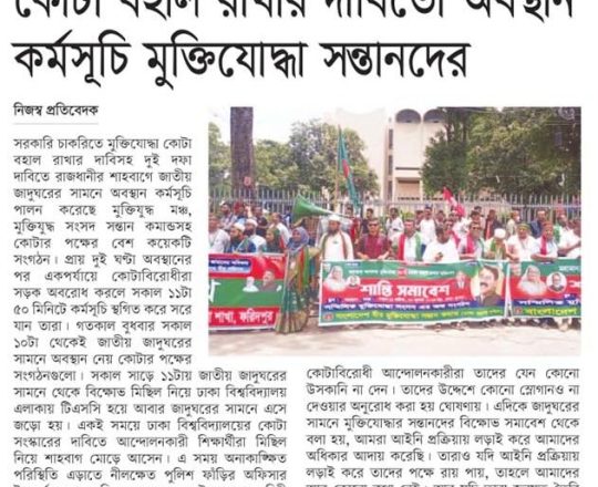 বাংলাদেশের আলো, ১১ জুলাই ২০২৪, কোটা বহাল রাখার দাবিতে অবস্থান কর্মসূচি মুক্তিযোদ্ধার সন্তানদের