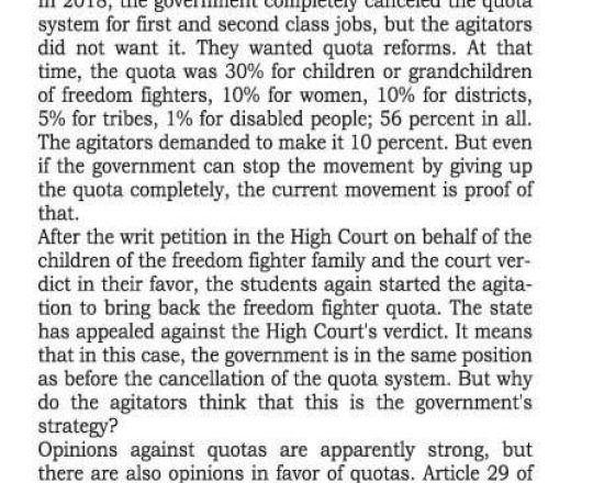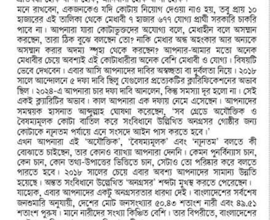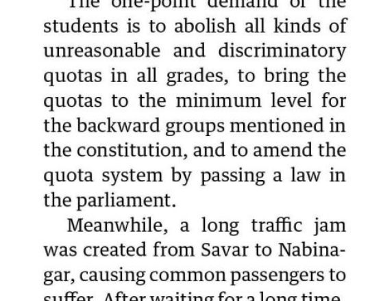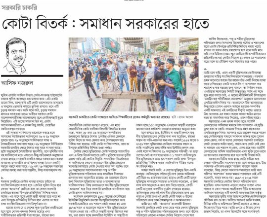 সংবাদ, ১১ জুলাই ২০২৪, কোটাবৈষম্যের বিরুদ্ধে প্রতিবাদের যৌক্তিকতা