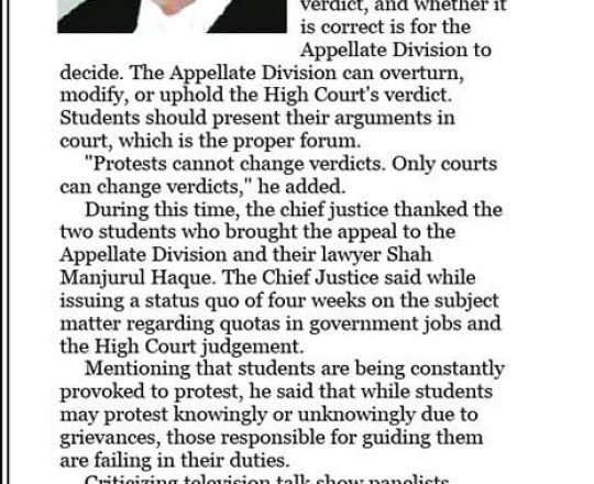 Asian Age, 11 july 2024, Protests cannot change verdicts: Chief Justice