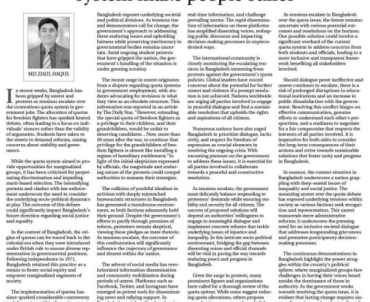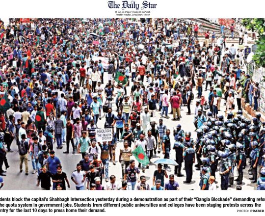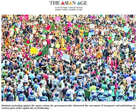 Asian Age, 11 july 2024, Students protesting against the quota system for government jobs