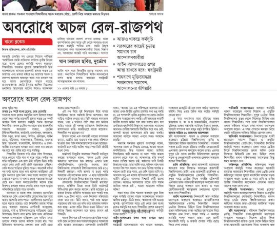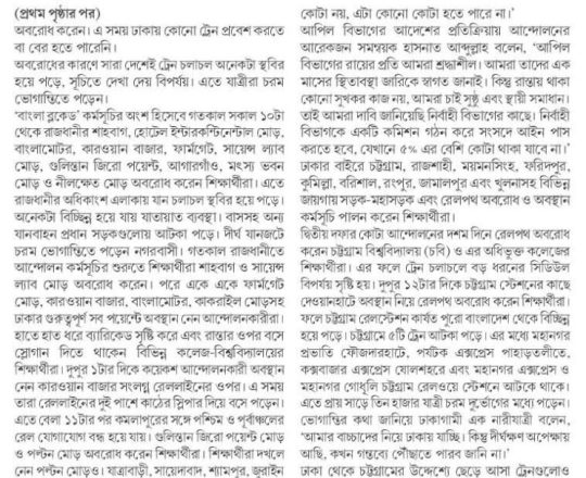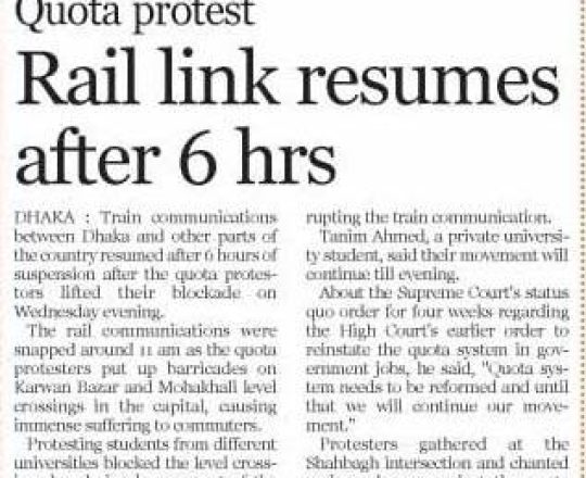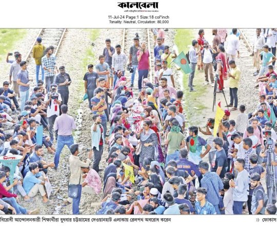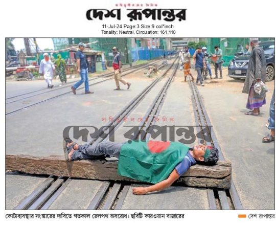 New Age, 11 july 2024, the quota system blocking the railway track at Karwan Bazar