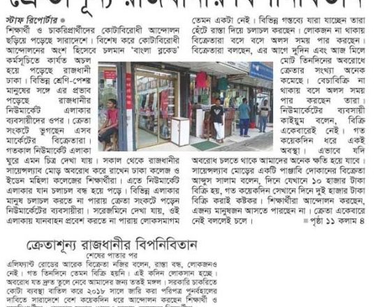 আজকালের খবর, ১১ জুলাই ২০২৪, অবরোধে স্থবির নিউমার্কেট ব্যবসায়ীরা দুশ্চিন্তায়