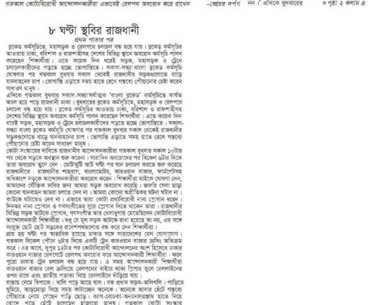 ভোরের দর্পণ, ১১ জুলাই ২০২৪, ৮ ঘণ্টা স্থবির রাজধানী
