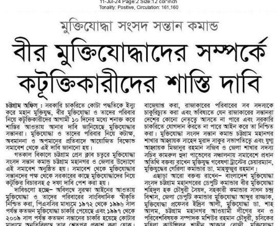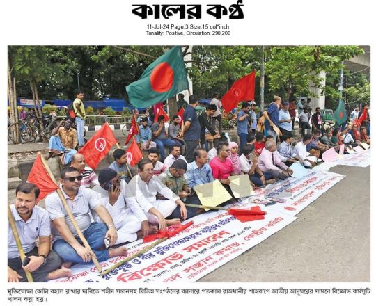 ভোরের কাগজ, ১১ জুলাই ২০২৪, মুক্তিযোদ্ধার সন্তান এবার কঠোর আন্দোলনের ঘোষণা