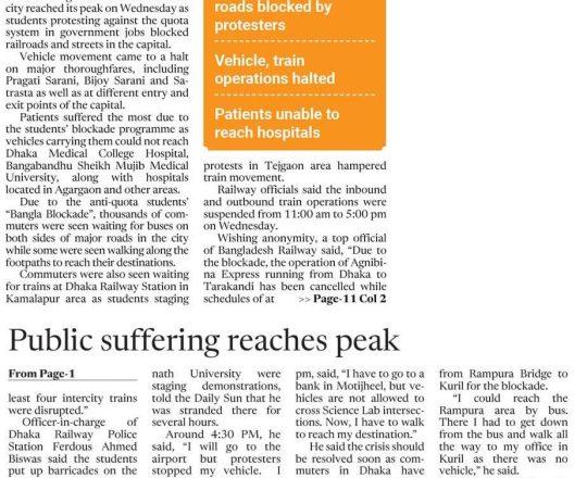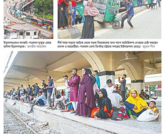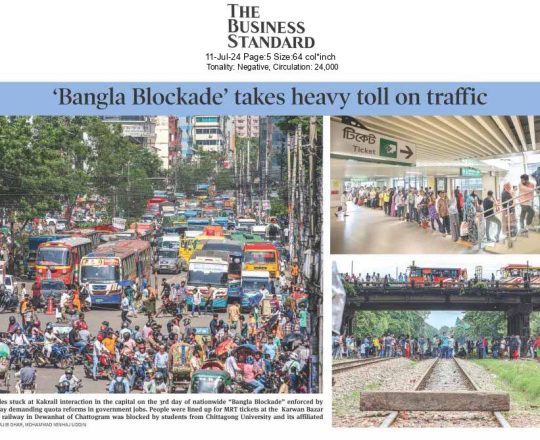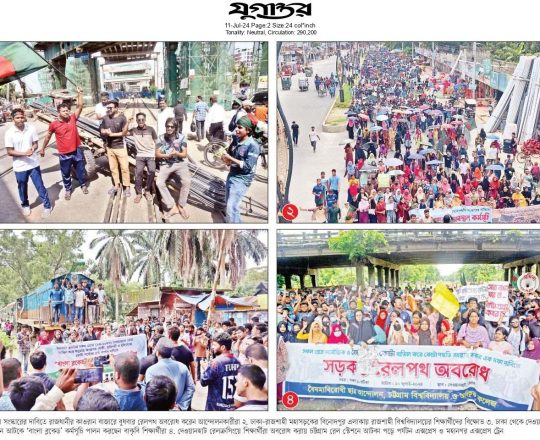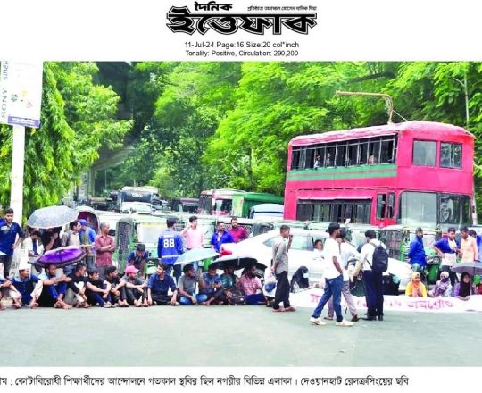 ভোরের কাগজ, ১১ জুলাই ২০২৪, সড়ক-রেলপথ অবরোধ যানজটে জনভোগান্তি