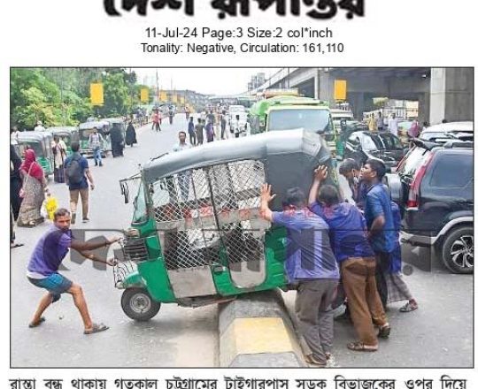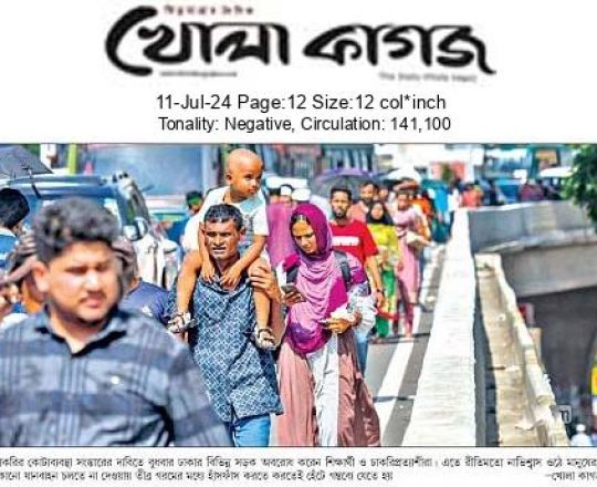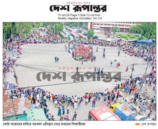নয়া দিগন্ত, ১১ জুলাই ২০২৪, বাংলা ব্লকেডে অচল সারা দেশ