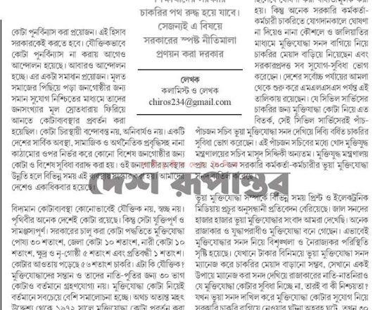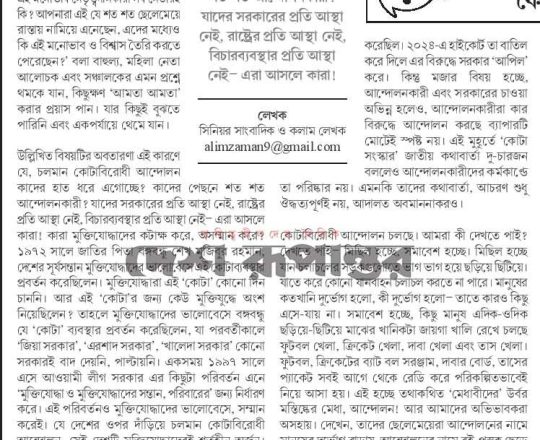 সমকাল, ১১ জুলাই ২০২৪, শুধু কোটা নয়, রাষ্ট্রও সংস্কার করতে হবে
