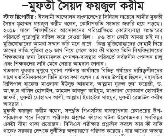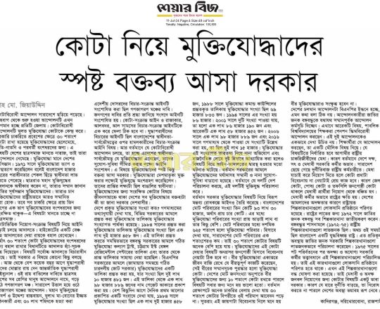 প্রথম আলো ১১ জুলাই কোটাব্যবস্থার যুক্তিসংগত সংস্কার চায় সেক্টর কমান্ডার্স ফোরাম
