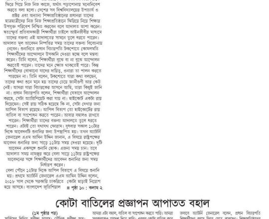 প্রথম আলো ১১ জুলাই বেগম রোকেয়া বিশ্ববিদ্যালয়ে কোটাবিরোধী আন্দোলনে শিক্ষকদের বাধা