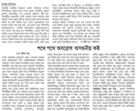 প্রথম আলো, ১১ জুলাই ২০২৪, অবরোধে দিনভর ভোগান্তি
