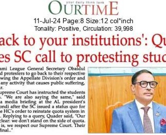 Our Time, 11 july 2024, Go back to your institutions': Quader echoes SC call to protesting students