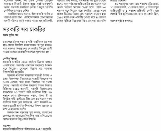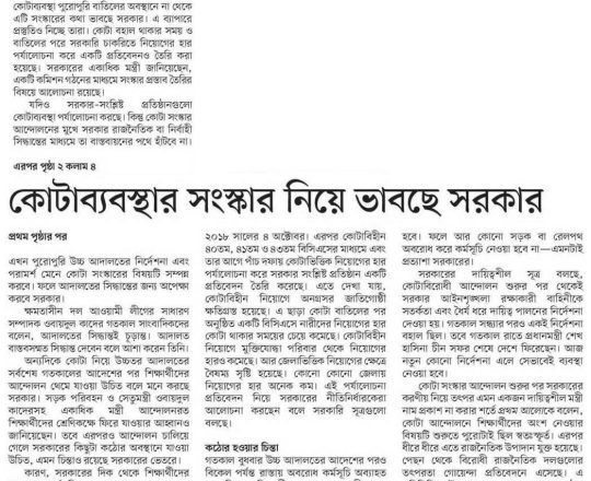 প্রথম আলো ১১ জুলাই কোটাব্যবস্থার সংস্কার নিয়ে কী ভাবছে সরকার
