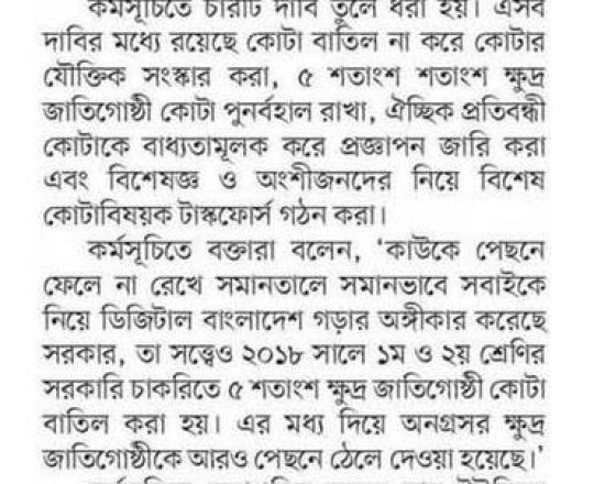 প্রথম আলো, ১১ জুলাই ২০২৪, ক্ষুদ্র জাতিগোষ্ঠী ও প্রতিবন্ধী কোটার দাবিতে বিক্ষোভ