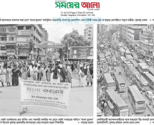 সময়ের আলো, ১১ জুলাই ২০২৪, আজ আবার বাংলা ব্লকেড
