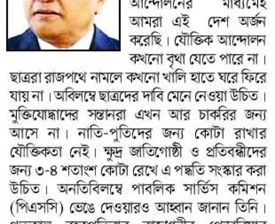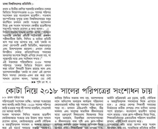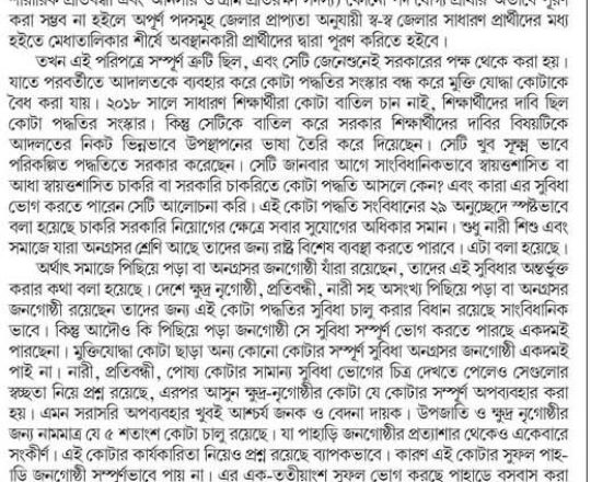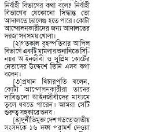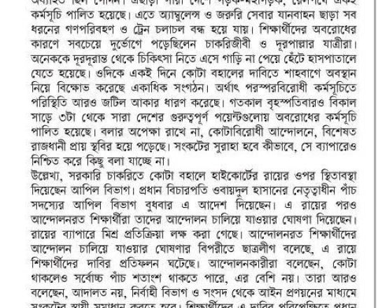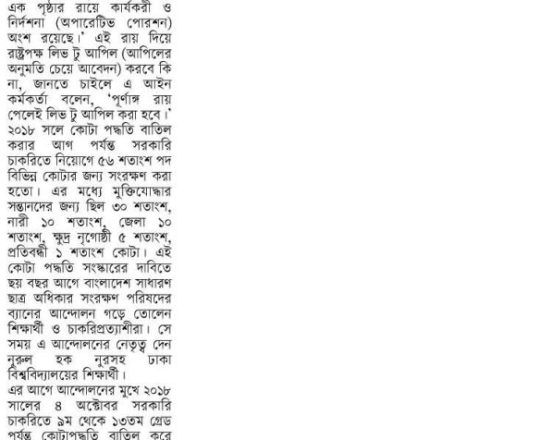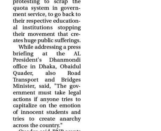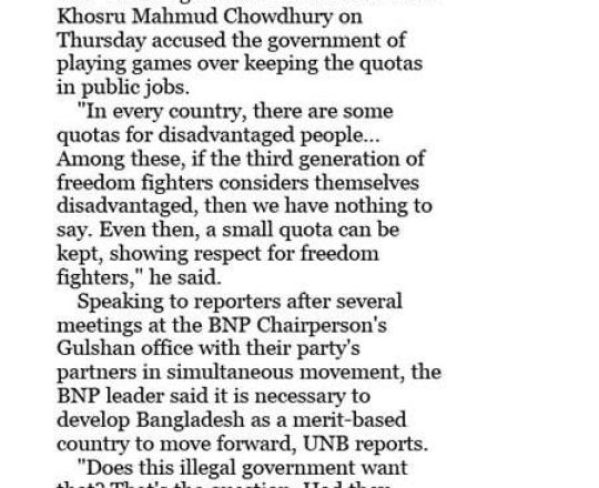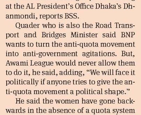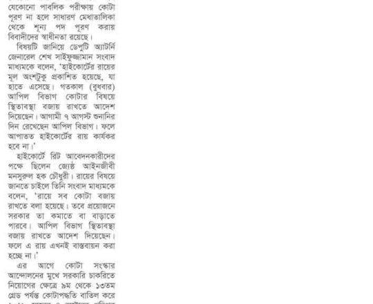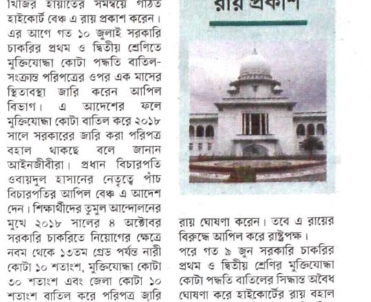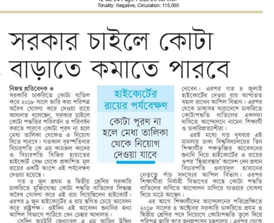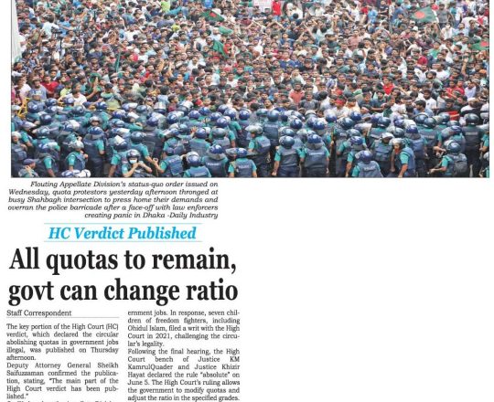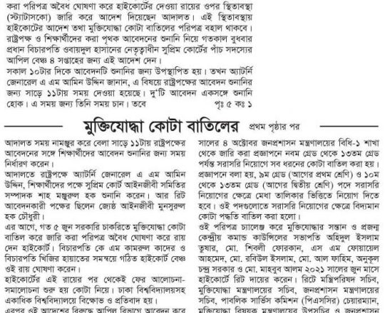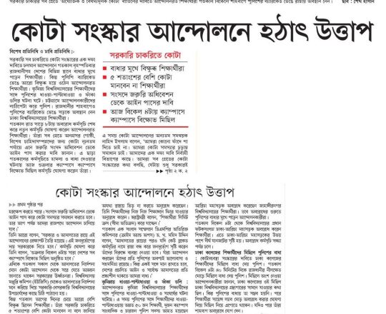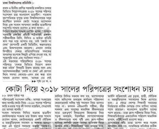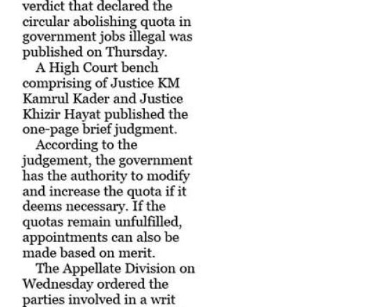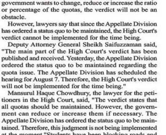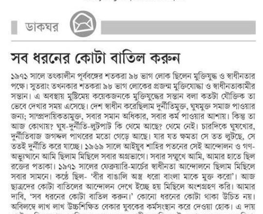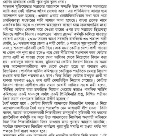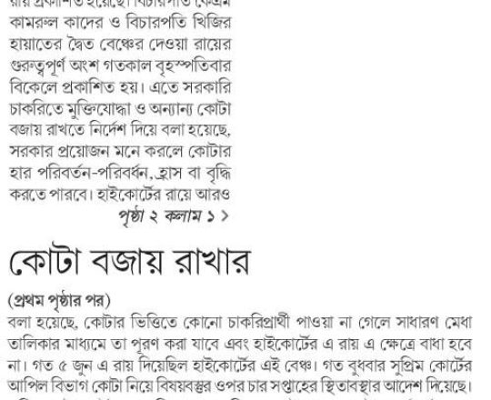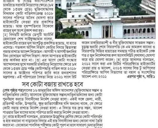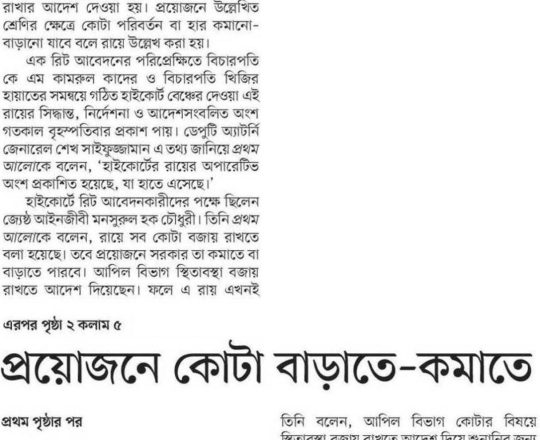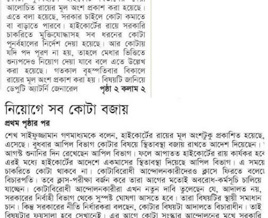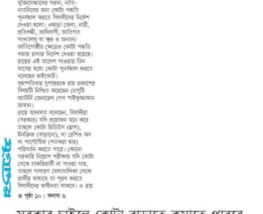 Bangladesh Post, 12 july 2024, Govt can change job quota ratio