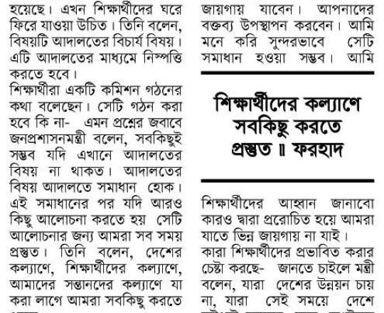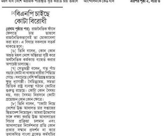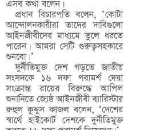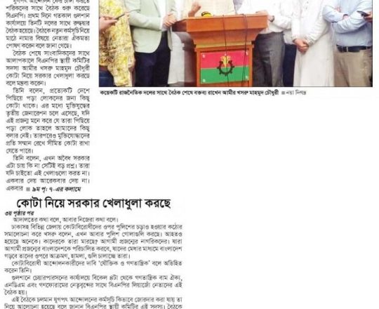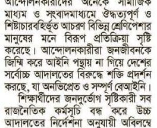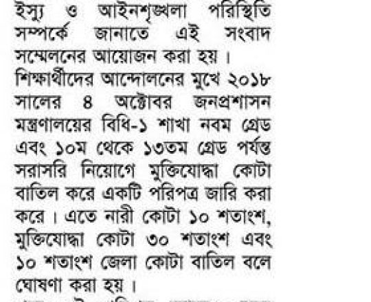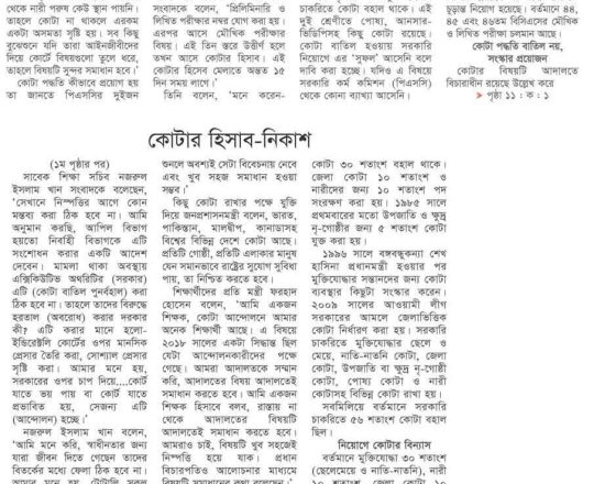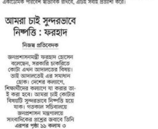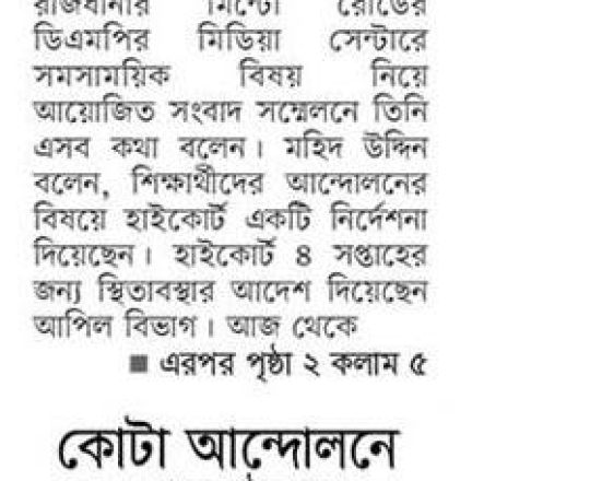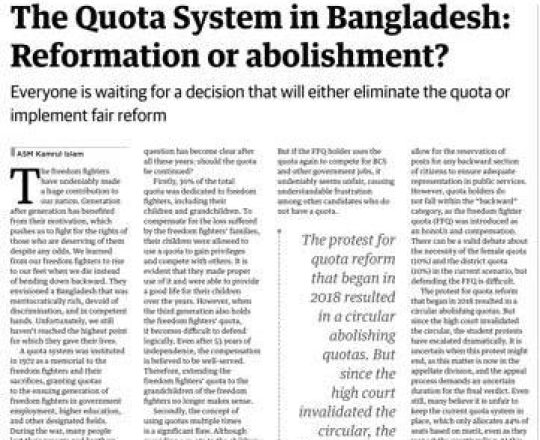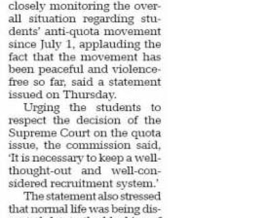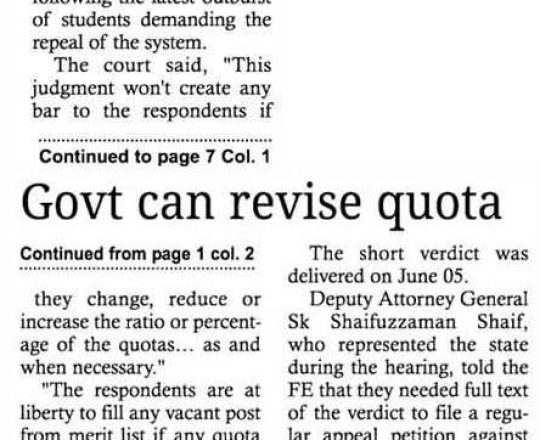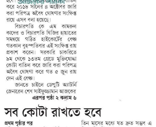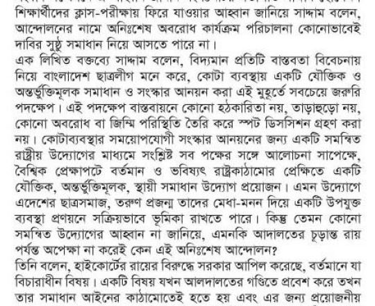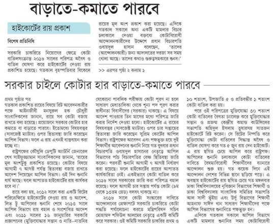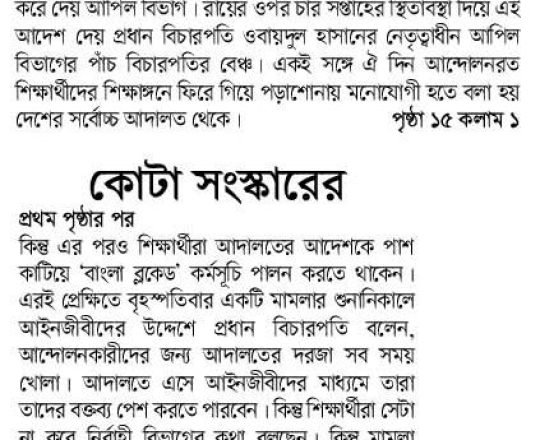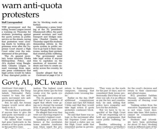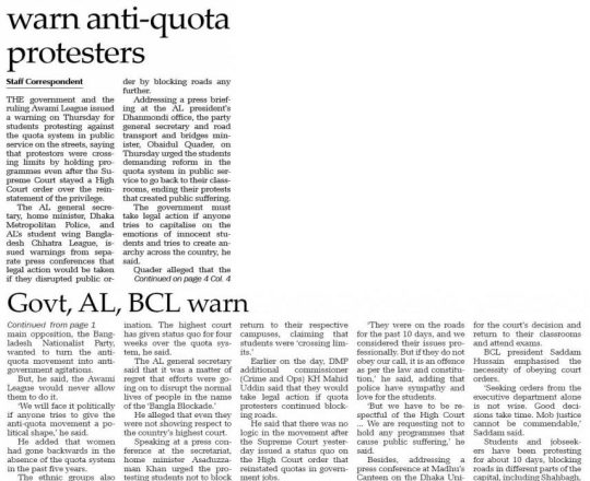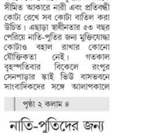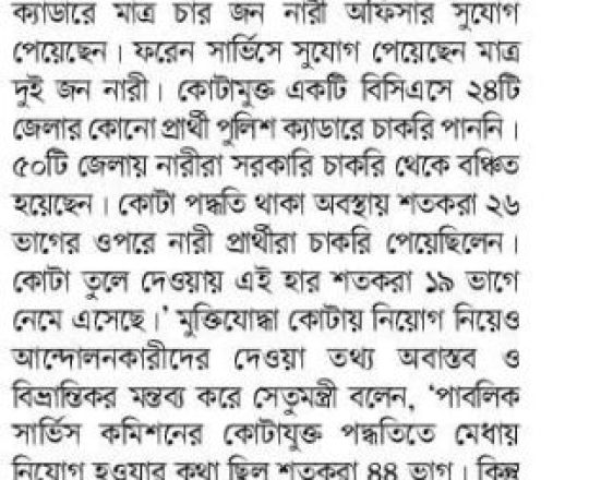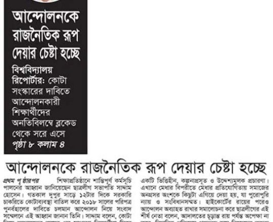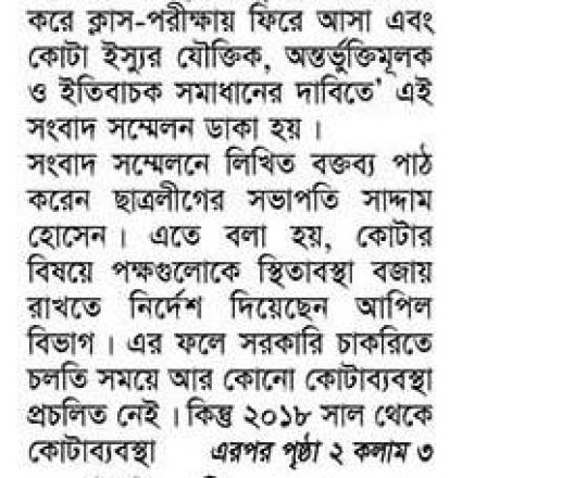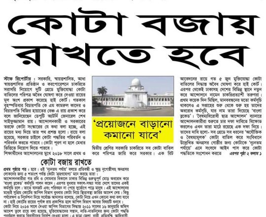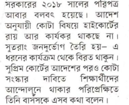 Bangladesh Post, 12 july 2024, Govt can change job quota ratio