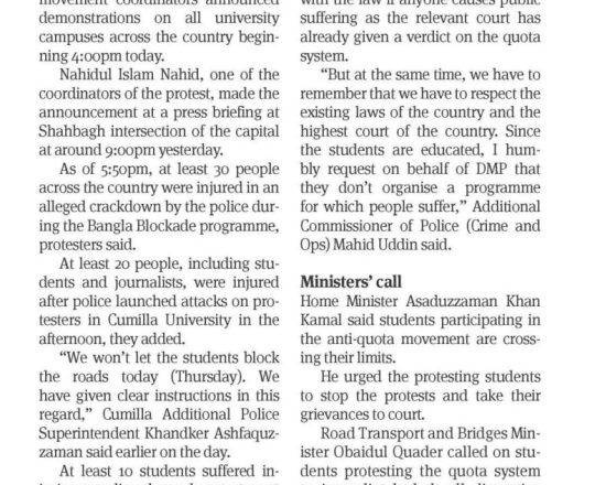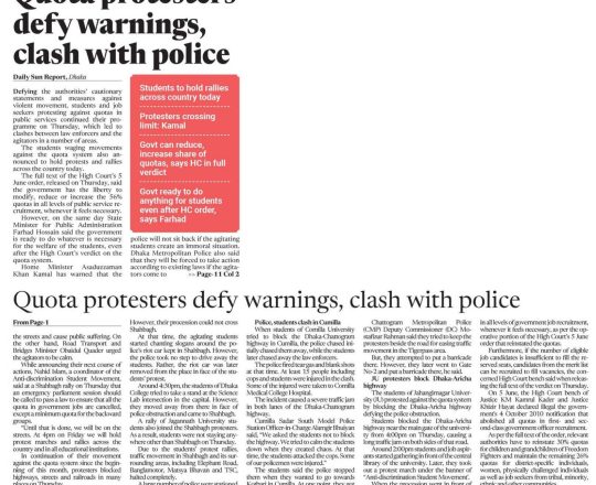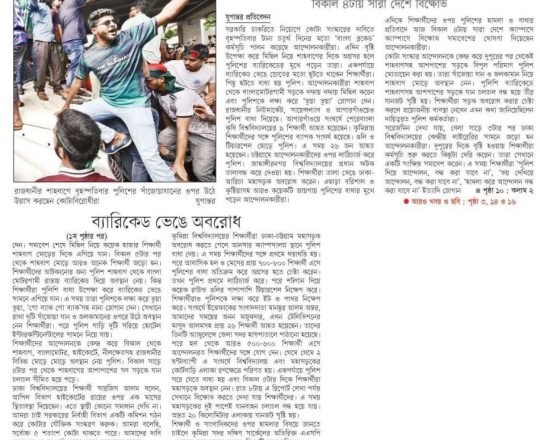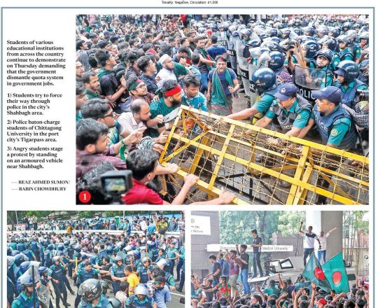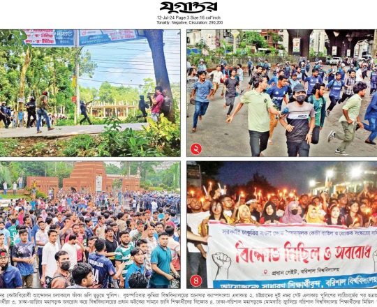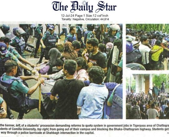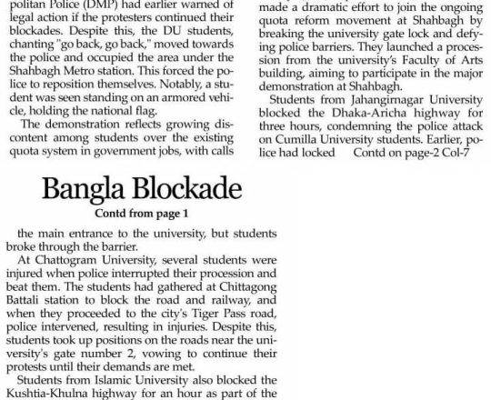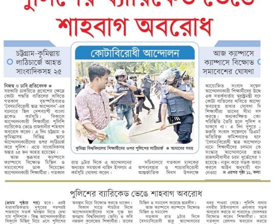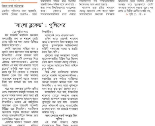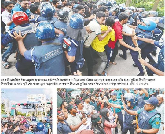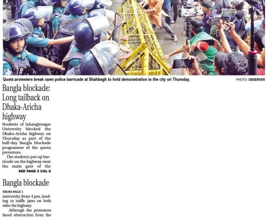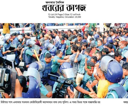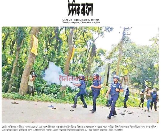 Bangladesh Post, 12 july 2024, Anti-quota protesters block roads, clash with police