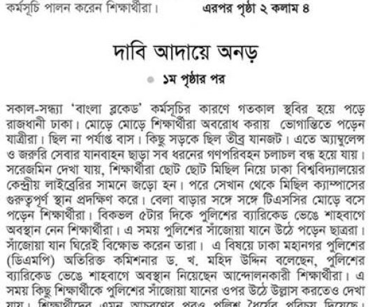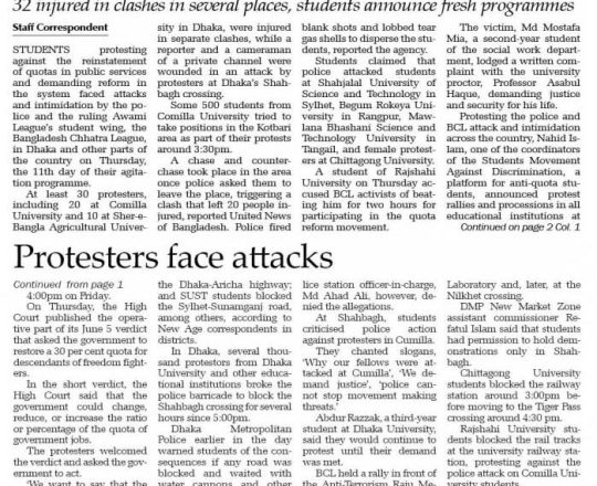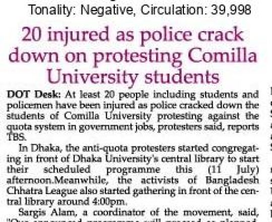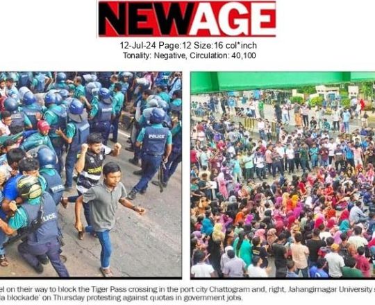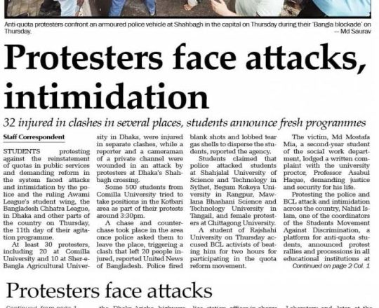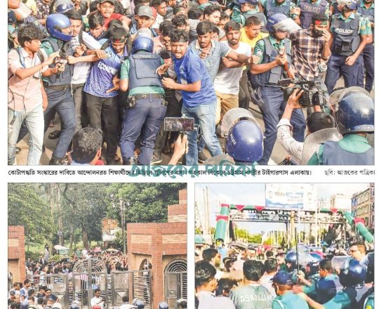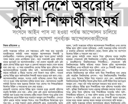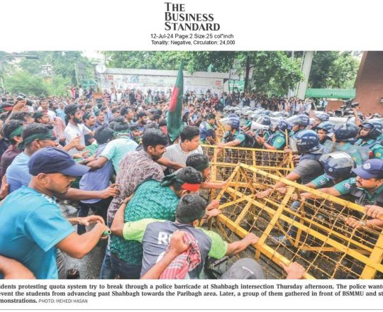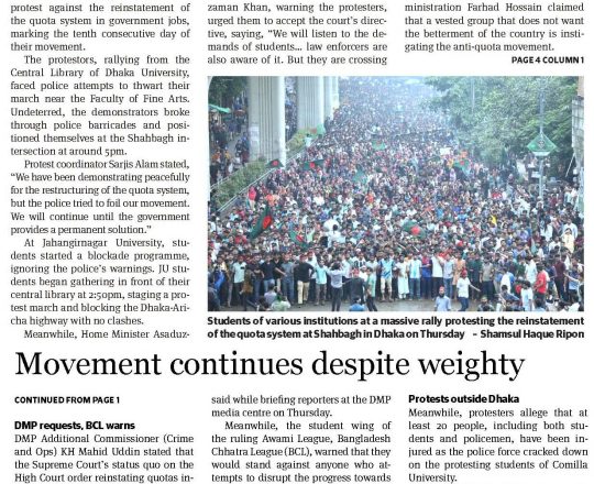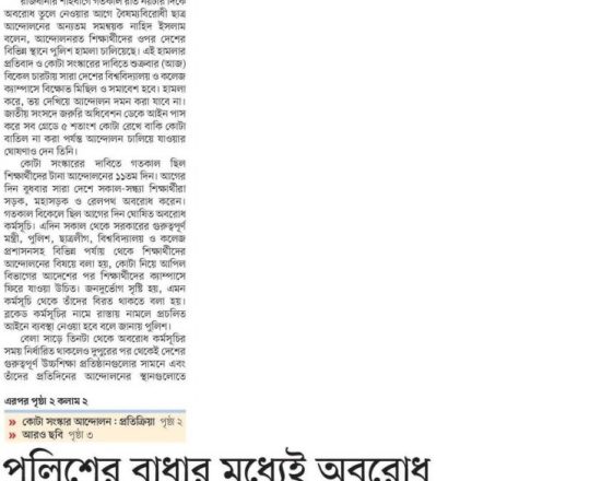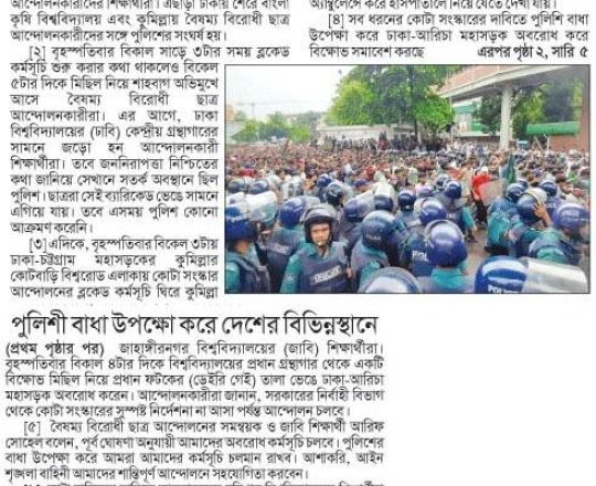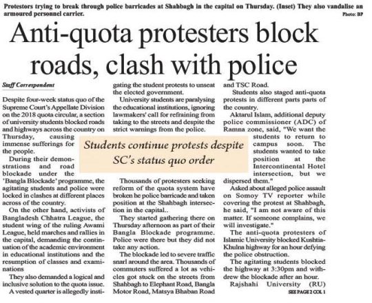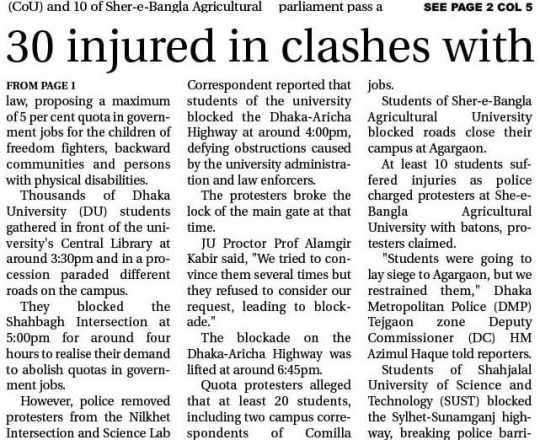 Bangladesh Post, 12 july 2024, Anti-quota protesters block roads, clash with police