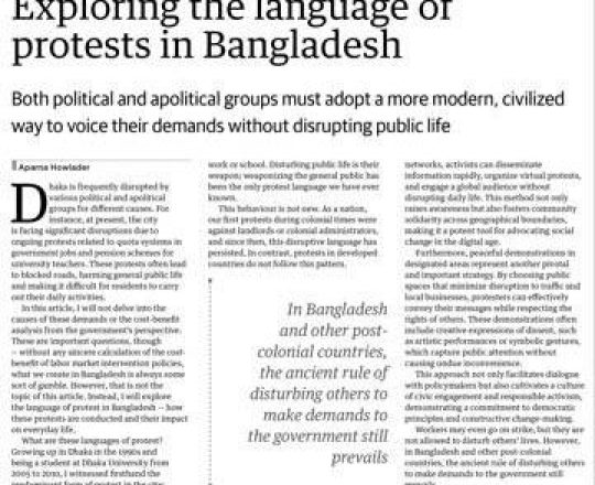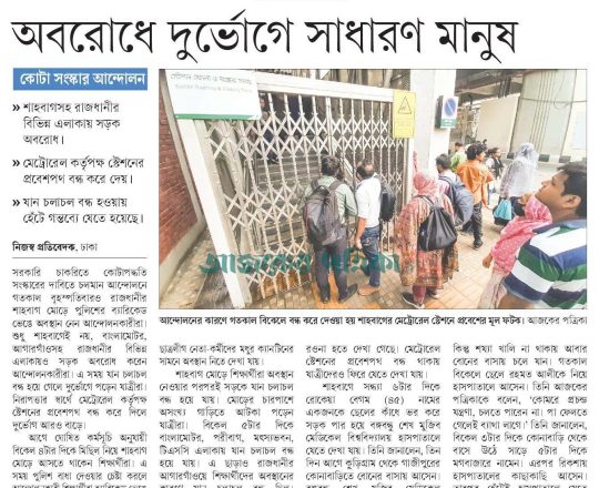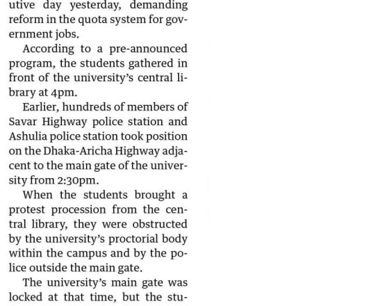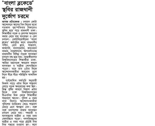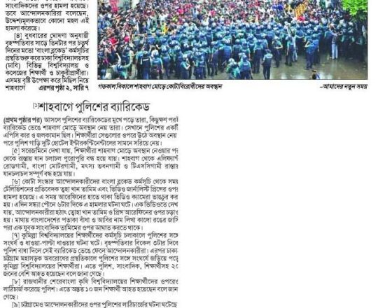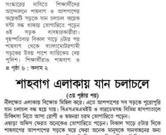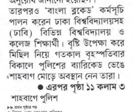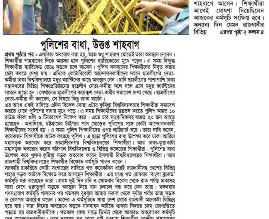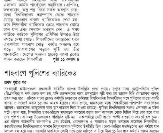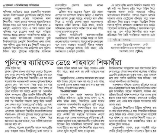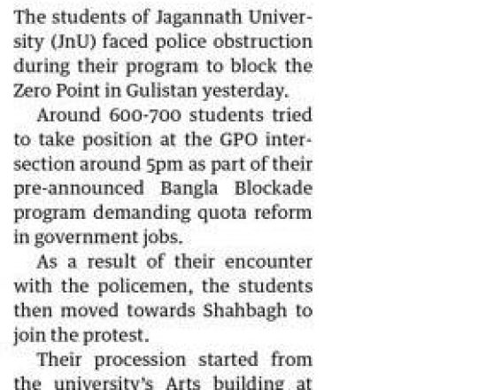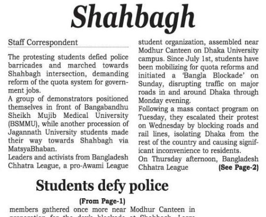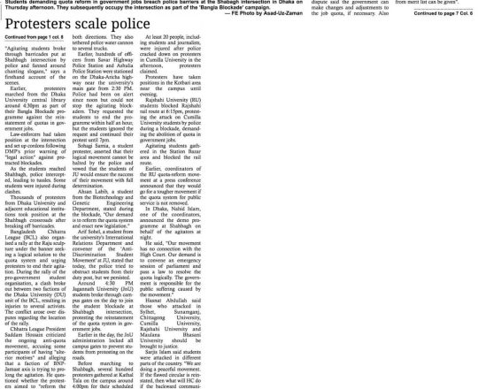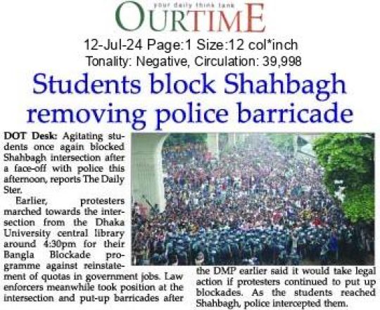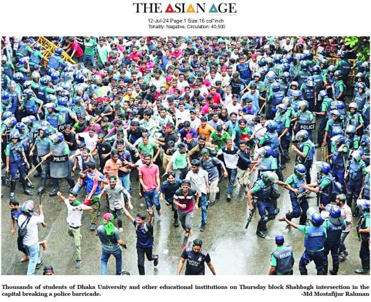 Asian Age, 12 july 2024, block Shahbagh intersection in the capital breaking a police barricade