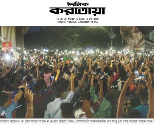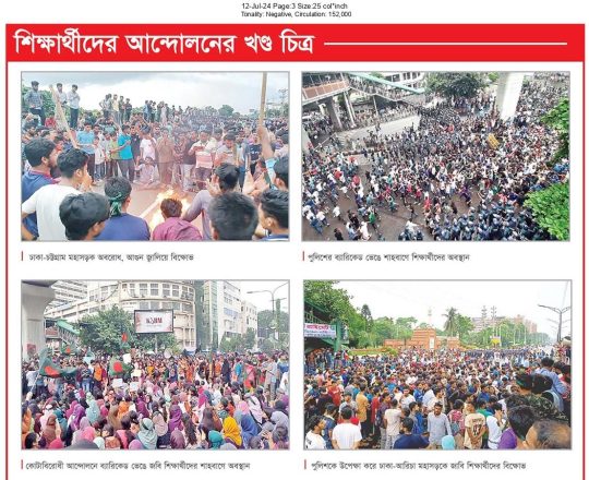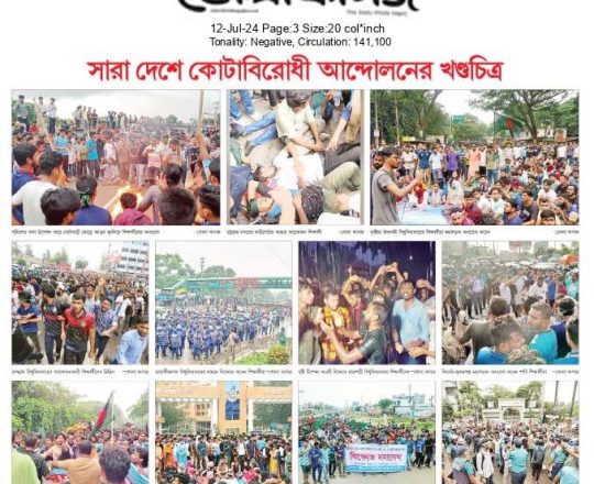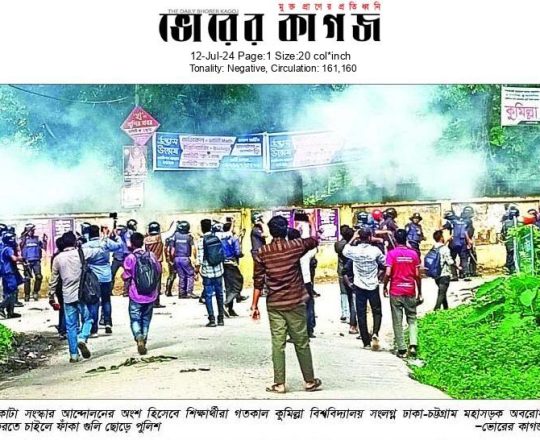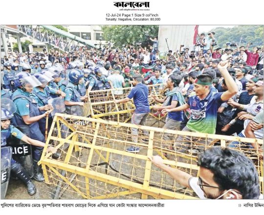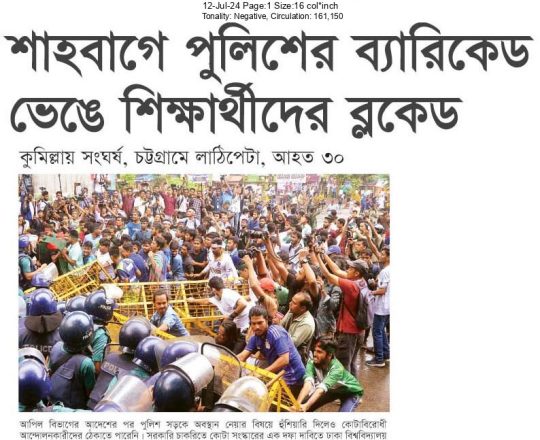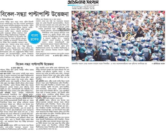 বাংলাদেশ প্রতিদিন, ১২ জুলাই ২০২৪, সংঘাতে গড়াল আন্দোলন