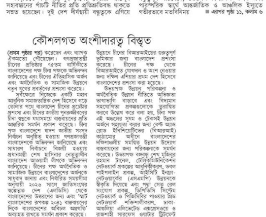 আমাদের সময়, ১২ জুলাই ২০২৪, কৌশলগত অংশীদারত্ব বিস্তৃত করায় সম্মত বাংলাদেশ-চীন