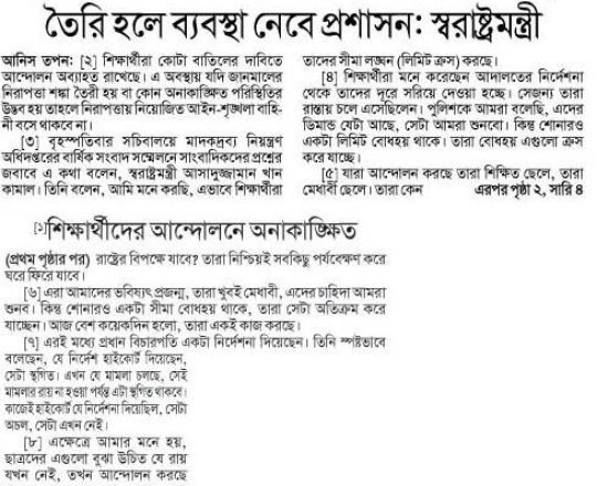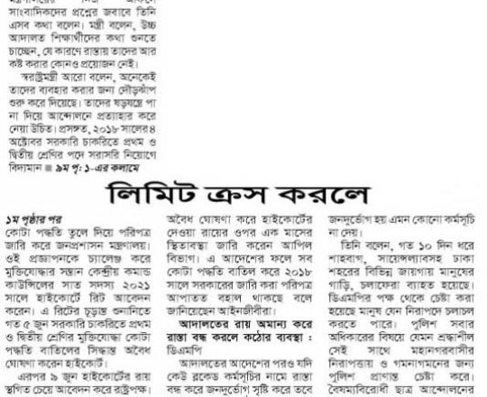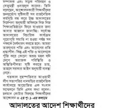 প্রথম আলো, ১২ জুলাই, আপনারা শুধু শুধু রাস্তায় থাইকেন না: আইনমন্ত্রী