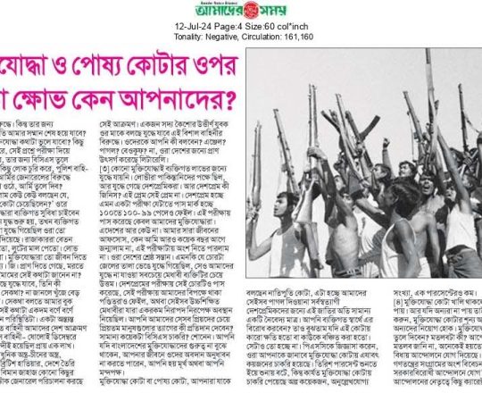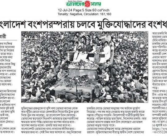 আমাদেরনতুন সময়, ১২ জুলাই ২০২৪, মুক্তিযোদ্ধা ও পোষ্য কোটার ওপর এতো ক্ষোভ কেন আপনাদের?