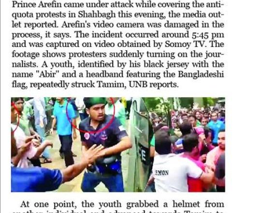 Asian Age, 12 july 2024, 'Reporter, cameraman attacked by quota protesters in Shahbagh
