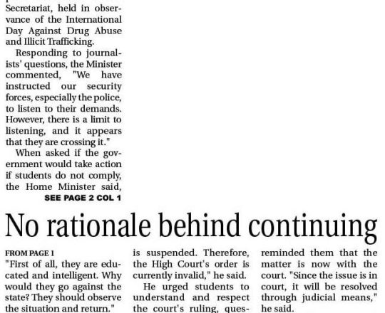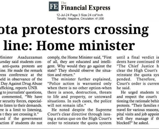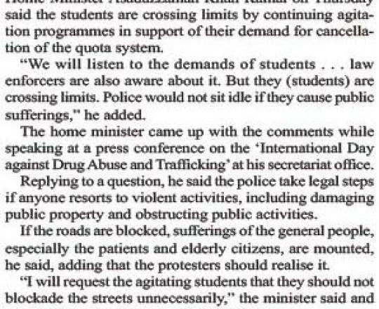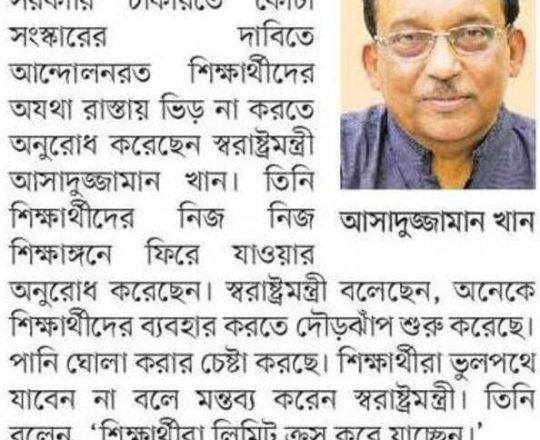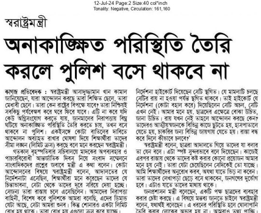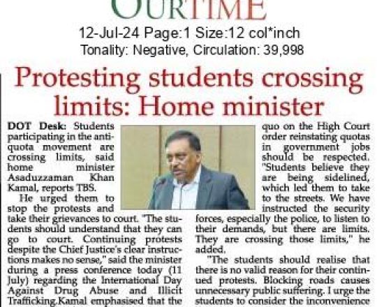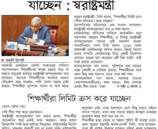 Bangladesh Post, 12 july 2024, Students crossing limits -Home Minister