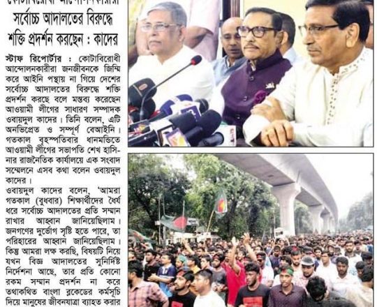 দৈনিক সংগ্রাম, ১২ জুলাই ২০২৪, আন্দোলনকারীরা সর্বোচ্চ আদালতের বিরুদ্ধে শক্তি প্রদর্শন করছে, ওবায়দুল কাদের