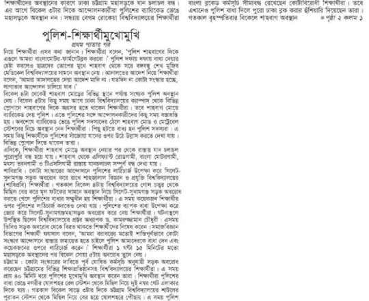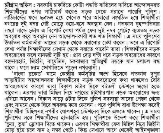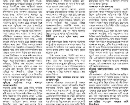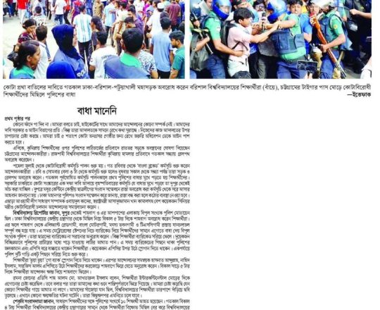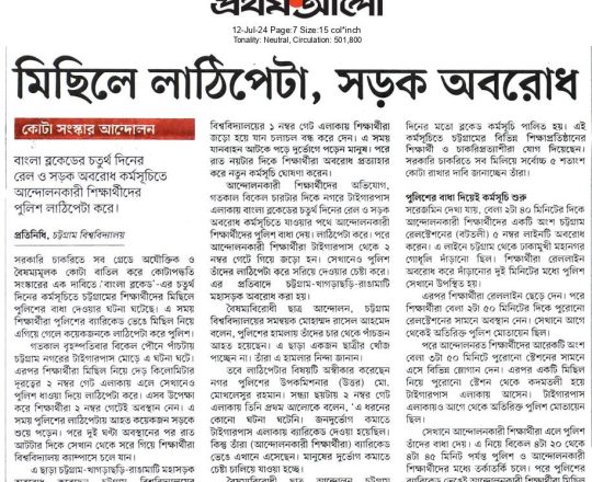 প্রথম আলো, ১২ জুলাই, চট্টগ্রামে মিছিলে পুলিশের লাঠিপেট