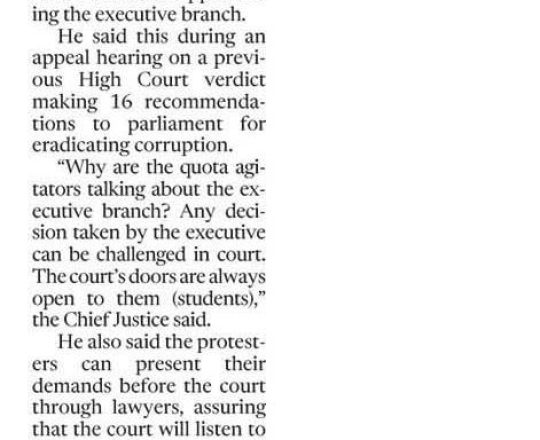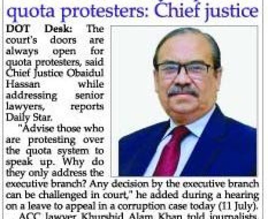 সংবাদ, ১২ জুলাই ২০২৪, কোটা আন্দোলনকারীদের জন্য আদালতের দরজা খোলা : প্রধান বিচারপতি