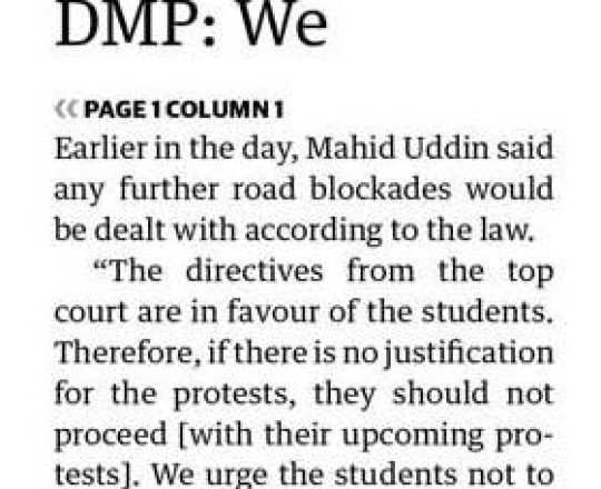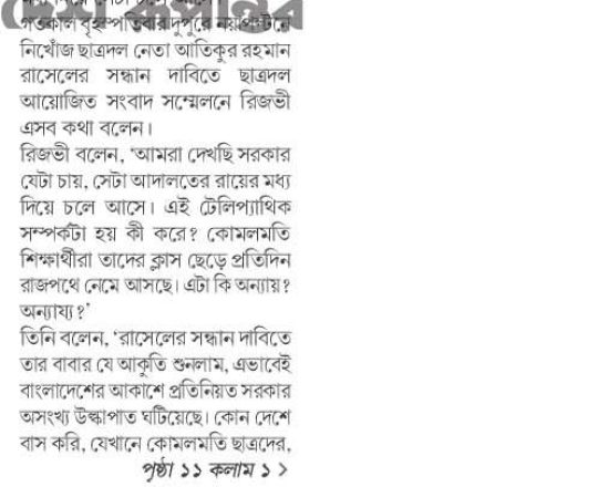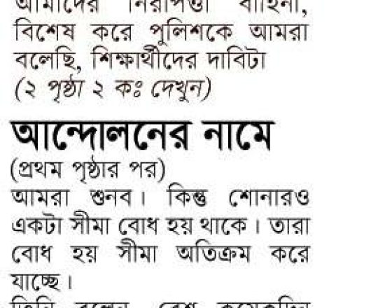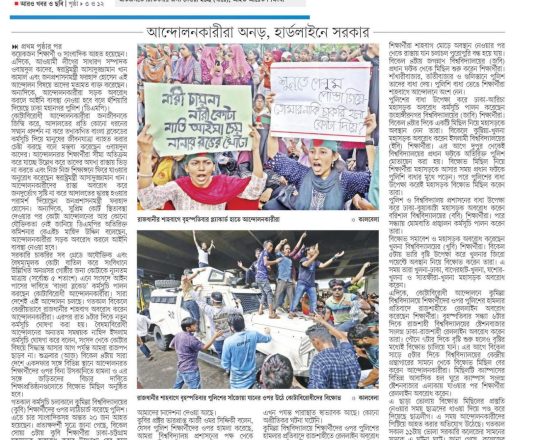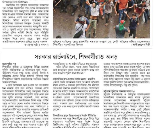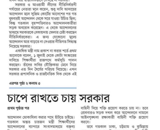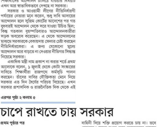 প্রথম আলো, ১২ জুলাই, রাজপথ থেকে সরাতে শিক্ষার্থীদের চাপে রাখতে চায় সরকার