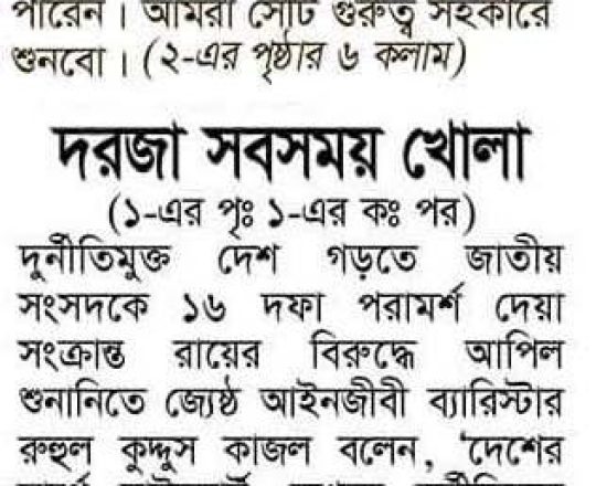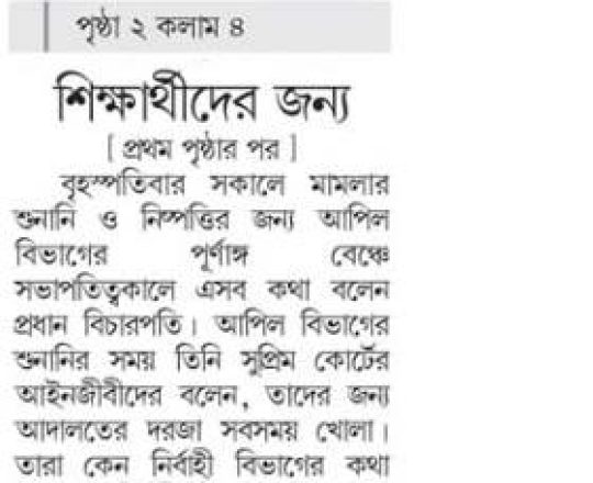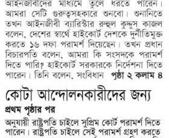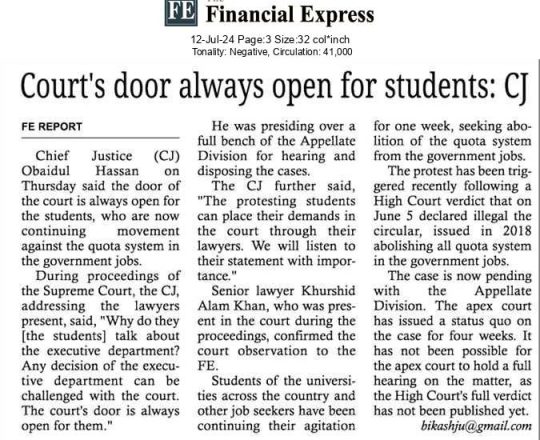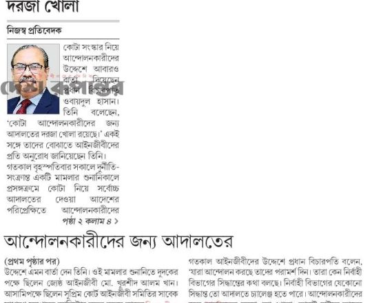 প্রতিদিনের বাংলাদেশ, ১২ জুলাই ২০২৪, আন্দোলনকারীদের জন্য আদালতের দরজা খোলা