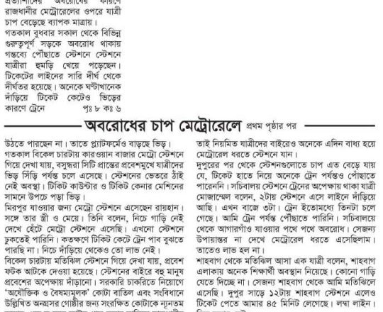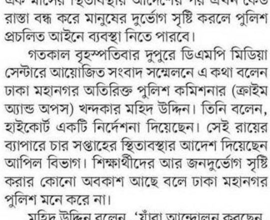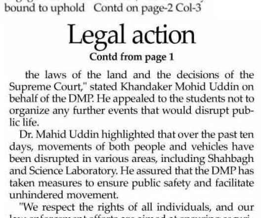 প্রথম আলো, ১২ জুলাই ২০২৪, দুর্ভোগ সৃষ্টি করলে ব্যবস্থা: ডিএমপি